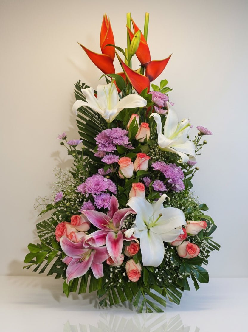 Soft, elegant, and irresistibly pretty — this Lavender Bliss Fresh Flower Bouquet is designed to bring warmth and joy to any occasion. Featuring a dreamy mix of pink lilies, peach roses, and baby’s breath, this bouquet combines fresh pastel tones with a luxurious, modern wrapping.