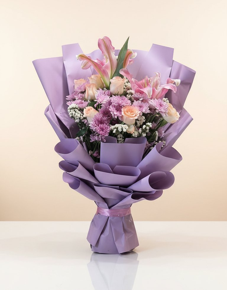 Wrapped in premium lavender and ivory paper and finished with a satin ribbon, it makes a thoughtful gift for birthdays, anniversaries, get-well wishes, congratulations, or simply to brighten someone’s day. Its gentle colour palette adds a calming and refreshing touch to any space.