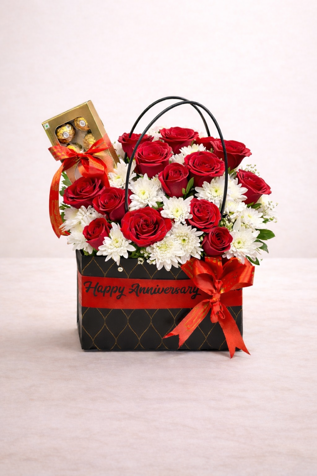 A premium celebration combo featuring a beautifully crafted cake paired with a luxurious floral box filled with chocolates and fresh blooms. Perfect for making special moments unforgettable.
